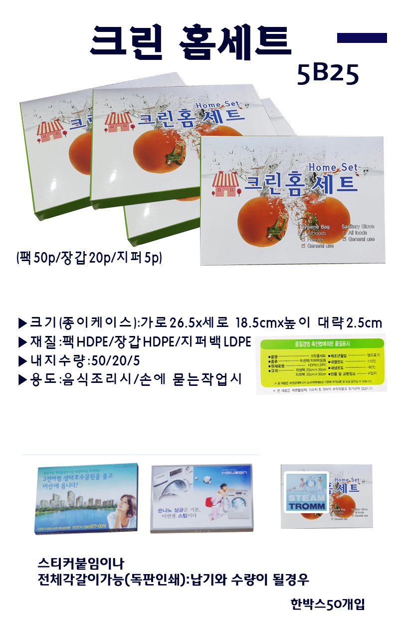 ÇÁ¸® Å©¸°È¨¼¼Æ® / À§»ý¹é30¸Å, ÀϹÝÀå°©20¸Å, ÁöÆÛ¹é´ë5¸Å ±¸¼º